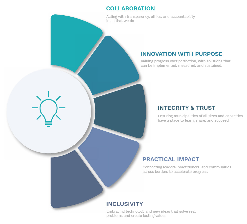 To empower municipalities worldwide by sharing innovative practices, integrated solutions, and proven strategies that transform governance, enhance service delivery, and build resilient communities.